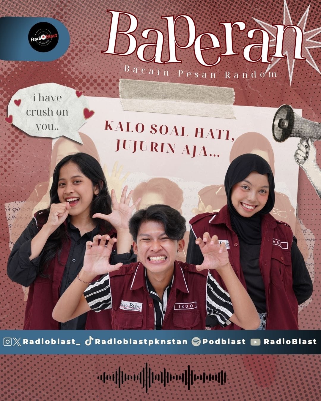 Tiga announcer ini bakal bahas keresahan sehari-hari tentang hidup, masa depan, hubungan, pertemanan, sampe hal-hal remeh yang entah kenapa bikin deg-deg-an. Santai, jujur, dan bikin lo ngerasa: “Oh, ternyata bukan gue doang yang gini.”